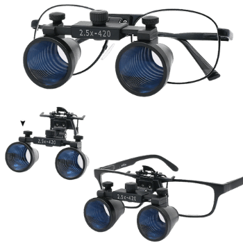 1x frame with 2.5x or 3.5x binocular glass lenses