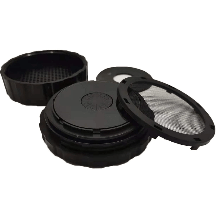 Lid, body, closing membrane and adhesive base.