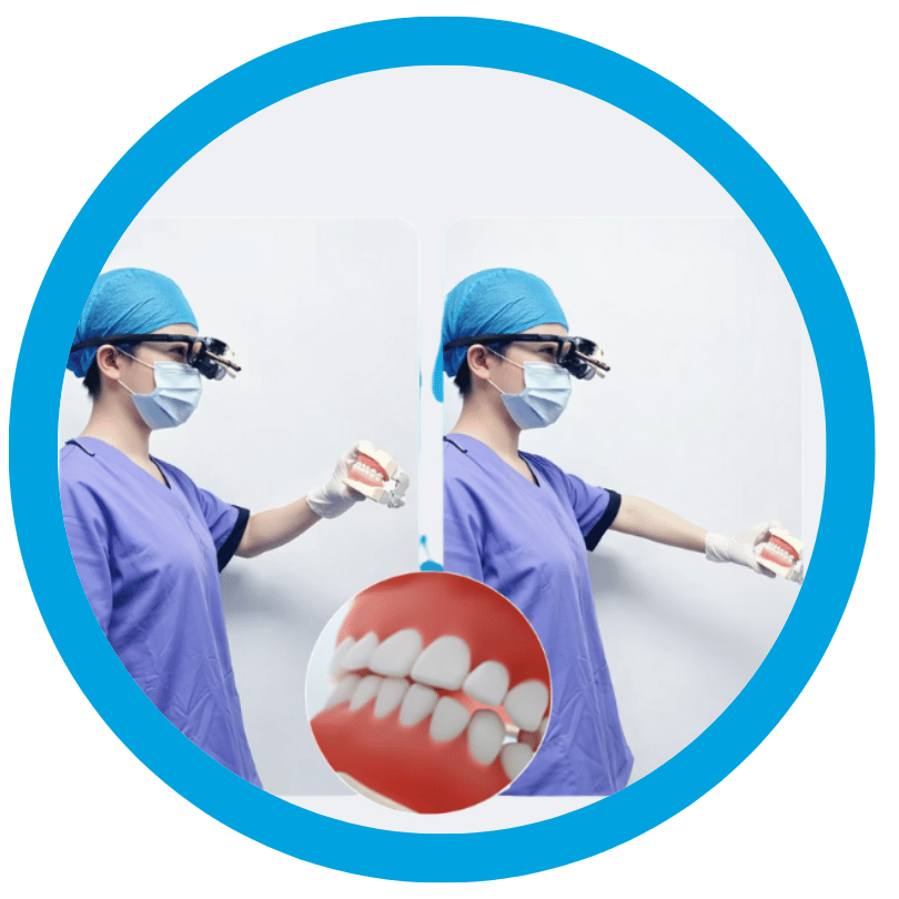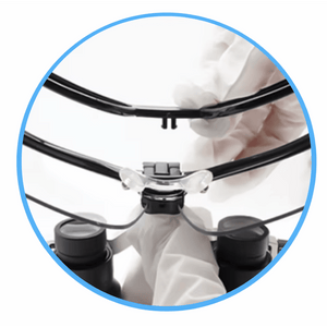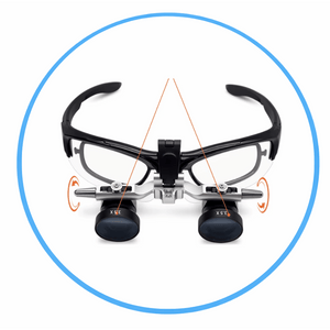 Adjust the loupe. Place it on your head, first adjust the lens body, then adjust the interpupillary distance to the left and right.